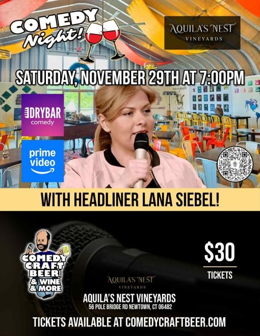 https://www.aquilasnestvineyards.com/The Comedy Craft Beer Tour brings the best of Northeast comedy to local breweries, wineries, and any other venue that serves alcohol throughout New England and beyond for an evening that keeps the drinks flowing, and the laughs coming. This tour has been doing shows in Connecticut, New York, Rhode Island, Massachusetts, Maryland, for 3+ years, adding more, and more venues each year.