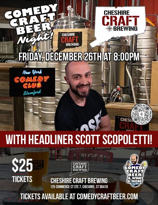 Join us for Comedy Night at Cheshire Craft Brewing. COME EARLY to get your seats and enjoy some beer before the show.