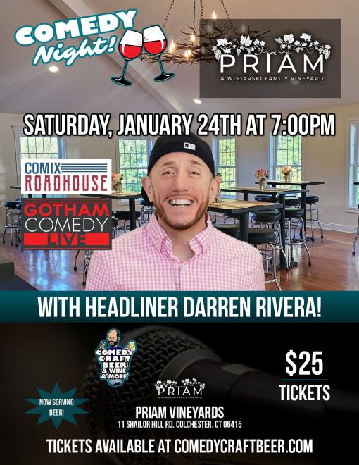 https://www.priam-vineyards.comThe Comedy Craft Beer Tour brings the best of Northeast comedy to local breweries, wineries, and any other venue that serves alcohol throughout New England and beyond for an evening that keeps the drinks flowing, and the laughs coming. This tour has been doing shows in Connecticut, New York, Rhode Island, Massachusetts, Maryland, for 3+ years, adding more, and more venues each year.